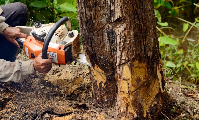 Beim Fällen einer Buche streifte der fallende Baum einen anderen Baum, wodurch von diesem ein Ast abbrach und den 48-jährigen Arbeiter traf.